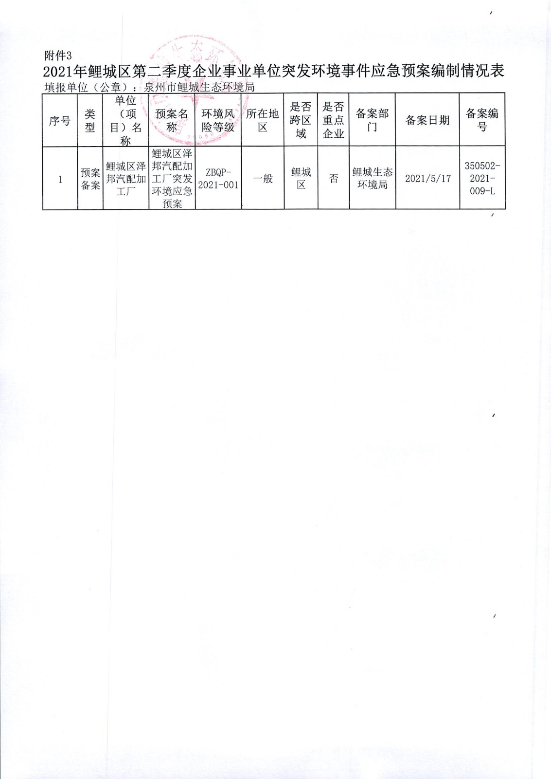 2021年第2季度韦德国际 企业事业单位突发环境事件应急预案编制情况表(详见附件)